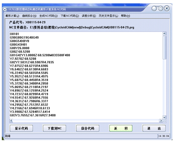 软件针对YK7332A数控成形砂轮磨齿机设计开发的,采用先进的结构框架,面向对象的编程技术,系统具有良好的人机界面,操作简单易学,总共包括四个功能模块:截形计算、圆弧拟合、砂轮修整子程序的自动生成、程序管理和下载。通过这四个功能模块,使得在加工中,能够根据摆线齿轮的基本参数,自动进行截形计算,圆弧拟合,最终生成砂轮修整子程序。对应的产品包括标准的摆线齿轮和两齿差摆线齿轮,其中标准摆线齿轮还包括多齿磨削。